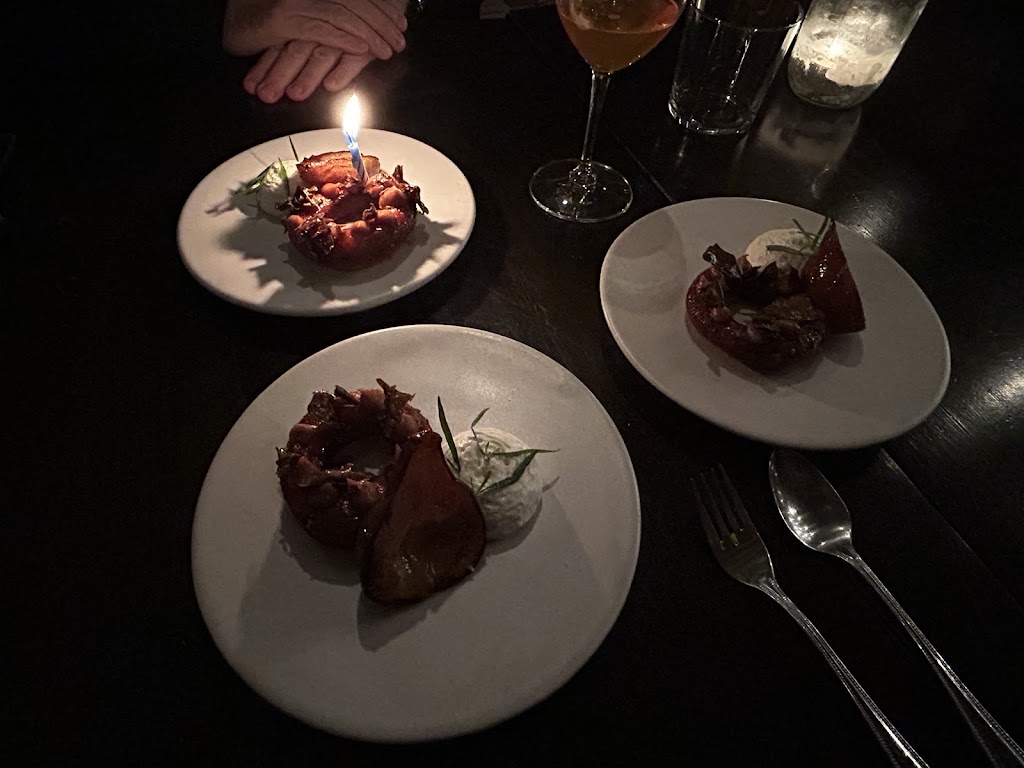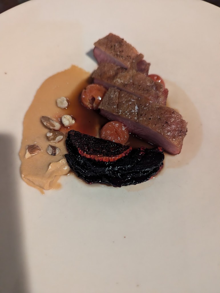 A really great meal tonight for dinner. The 5 course Fall menu is worth a trip. The roast duck dish was perfect. The bread, pate and miso butter was a fun course. The cauliflower dish was unexpectedly good. I think the lobster base is what gave the vegetables flavoring. I'm not a fan of the dessert. It just wasn't my style. I wish it was something Fall fruit related.