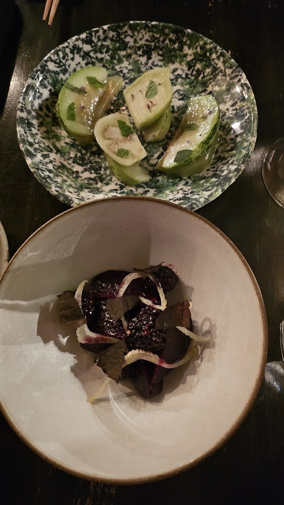 First ones in just before 6, welcomed warmly and fed wholesome and balanced dishes. Smokey, rich, creamy, tangy and tart - all at the right times and with playful vehicles as the medium (walnuts and beets can taste LIKE THAT!?). Loved the bread course - think high class snack plate. Great service and wines on offer. Wine pairing was on point. Thank you!