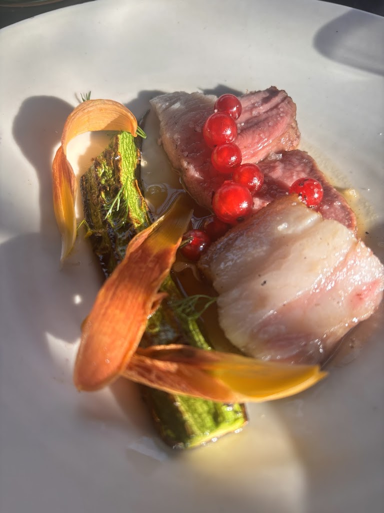 Incredible food and service in a beautiful setting. Every course of the set menu was divine. So fun to watch the chefs cooking your meal outside on open fires. Hidden gem.