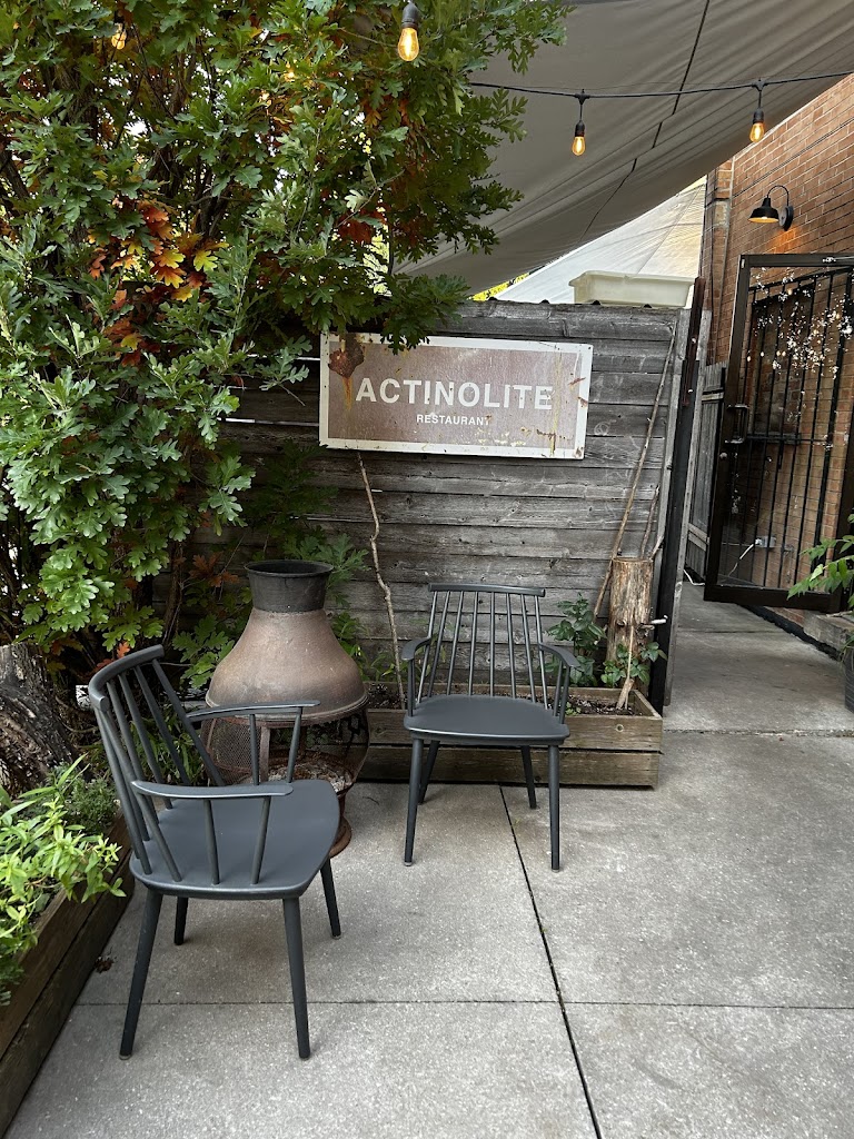 Actinolite is a hidden fine dining gem on Ossington Avenue. It s about half way between Bloor and Dupont and there s not a whole lot else happening on that part of Ossington, but the restaurant is definitely enough of a reason to make your way to the area. The restaurant is very focused on the best quality seasonal produce, sourced, for the most part, from local producers, including from chef s home town of .well Actinolite! It is a fixed menu, so you don t get to select what you re eating just be sure to tell them of any allergies or dietary requirements when you reserve. You re usually looking at a tasting menu of about 5 delicious courses, which can be served with or without wine pairings. The wine selection is usually excellent and unusual! The way this restaurant has innovated throughout the pandemic by opening their backyard / garden for a fireside series menu was excellent sitting around fires during frisk weather drinking complimentary hot cider with brandy while we watched our food being cooked over the fire in Fall / early winter was just amazing! Strongly recommend this restaurant!