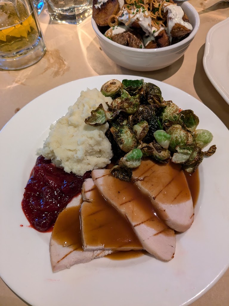Maple Leaf Tavern has a cozy atmosphere and delicious beverage & food offerings. We dined in during the Canadian Thanksgiving weekend, and I got the fire roasted turkey dinner special. The appetizers and frosted mug beer also did not disappoint.