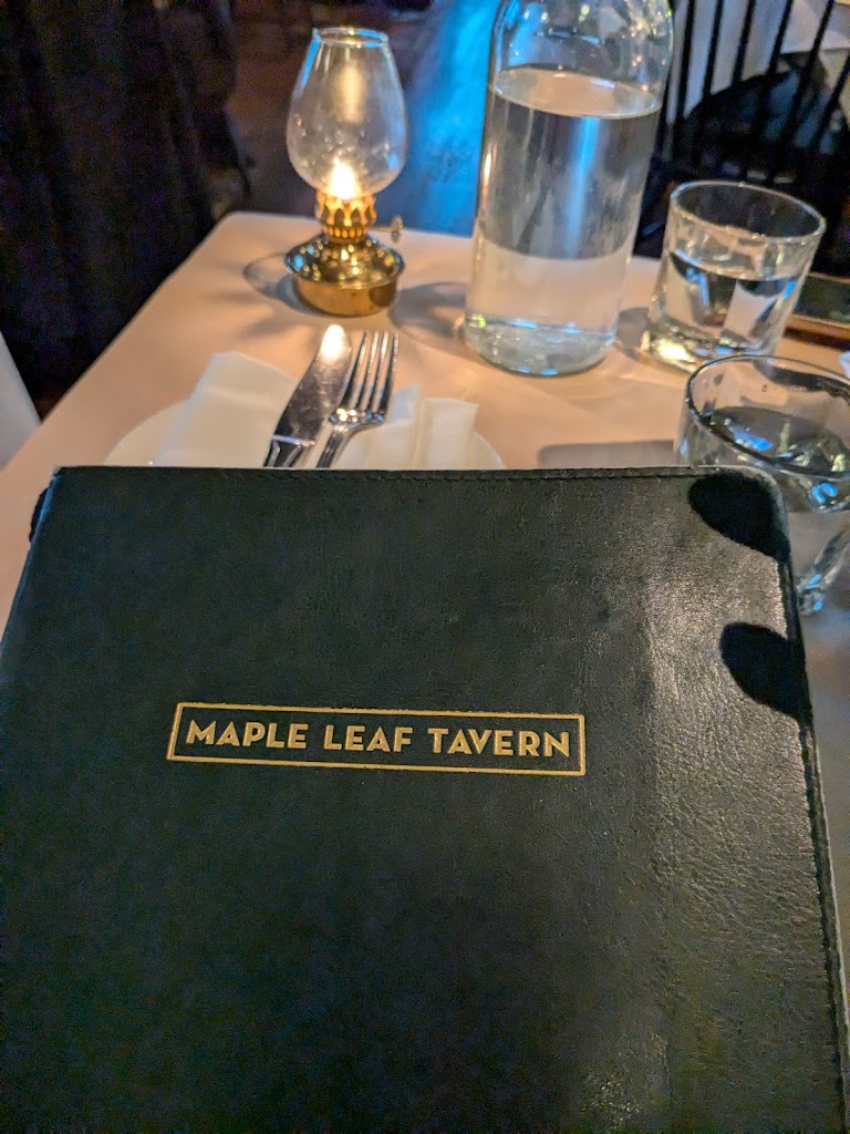 I hadnt been to the Maple Leaf Tavern since 2019 and now Im thinking I should be visiting every month. Absolutely fabulous food, cozy atmosphere, friendly BOH and FOH staff - even the playlist was excellent. Honestly, my only source of consternation is the menu, as absolutely everything sounded delectable and it was very hard to choose. Highly recommend the Manhattan on Tap, which comes with the best cocktail cherries Ive ever eaten.