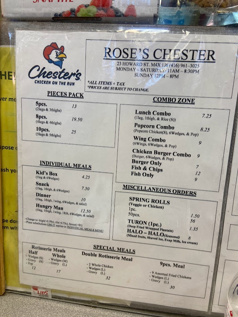 This place is pretty dope considering the area. It’s a nice phillipino lead place that serves a lot of things inside other than fried chicken. I had the most awaited fish and chips from here and it turned out to be crispy and fresh!! They also serve sweet buns, flans, moon cakes and crispy breads. If you want to refer to their menu please check the images I’ve added!! It’s price is reasonable and worth an experience! Just hoping this turns out to be halal some day! And you should try their menu. I think it’s worth a try for the price and the quantity ! Delicious and crispy fresh chicken / fish tenders on the go.. PS :The place is right outside Sherbourne station .