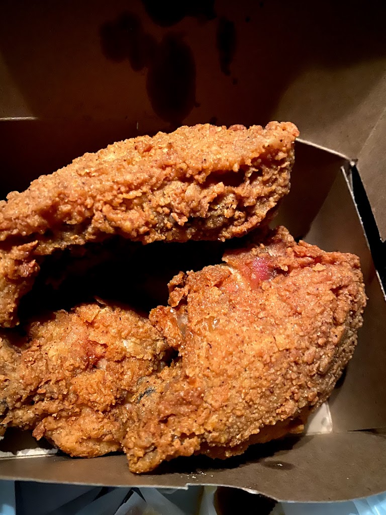 Popcorn chicken is good Chicken wings are good Fried chicken is bland