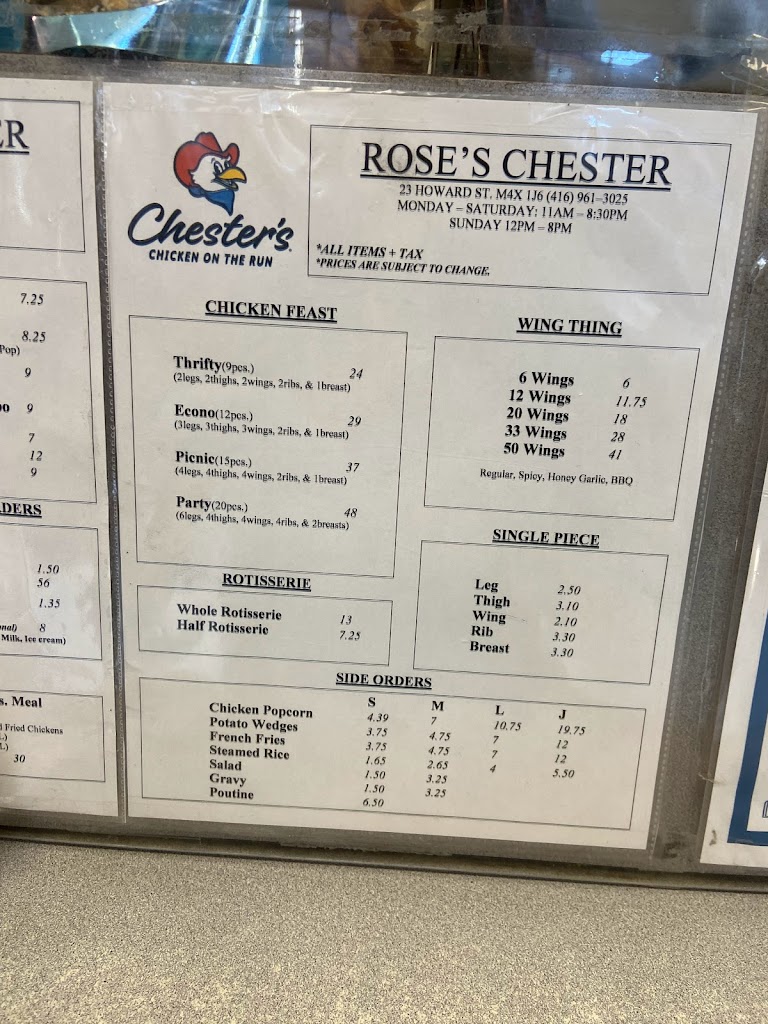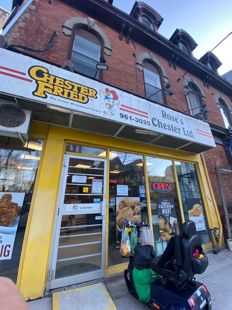 So convenient. Chicken is tasty. I love the popcorn chicken. Location is good with parking in front with fee. Walking distance to the Sherbourne subway. Price is reasonable. Service is good and fast Many shops around. Food