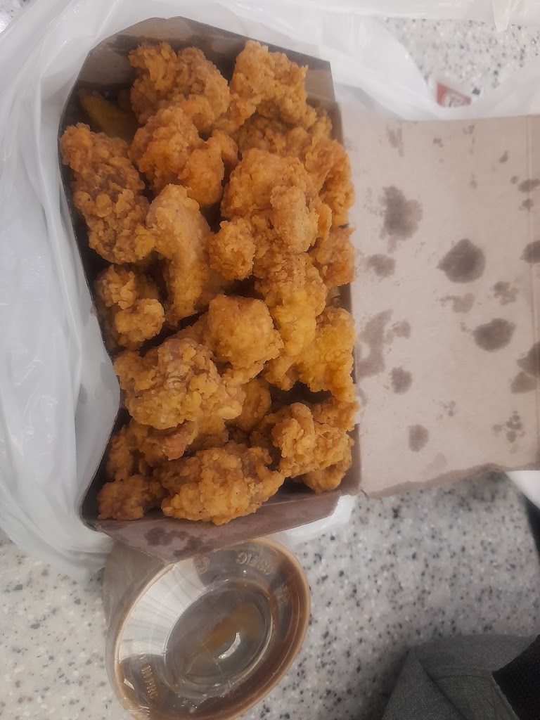 Poor parking but cheap and fast. The popcorn chicken was delicious the most recent time. It was actually not as salty or greasy as it has been in the past which made it sort of feel almost healthy and generally speaking, its not the most salty or greasy food Ive ever eaten. Usually its pretty good. Yesterday was just particularly good. The potatoes are really going to mesh well with whatever sauce you can get. Even if its just ketchup. There are okay by themselves but not really good. You put a dab of catch up on there and youre going to have yourself a great time