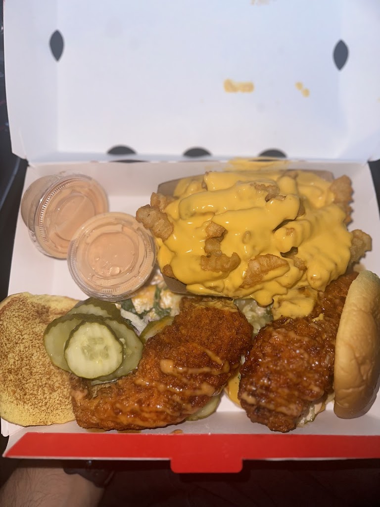 Daves hot chicken is something you need to try! Amazing tenders and slides and great customer service Joe was great. Definitely recommend to everyone