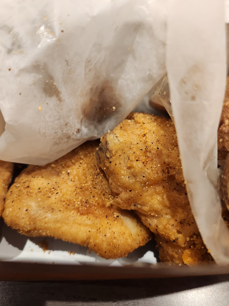Food was pretty good. The chicken wings were good I think the sauce softened them so they weren't to crispy. The "swicy" which I assume is sweet and spicy was barely sweet and spicy more so savory with a hint of spice. You get 6 wings in an order. Fries were good.