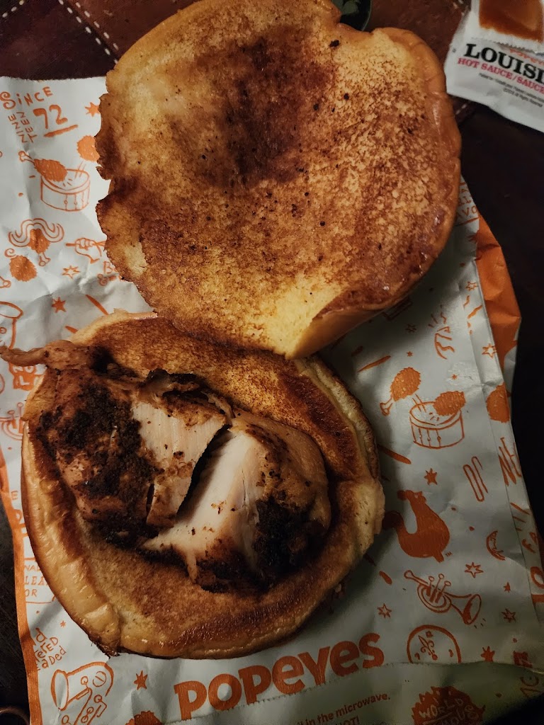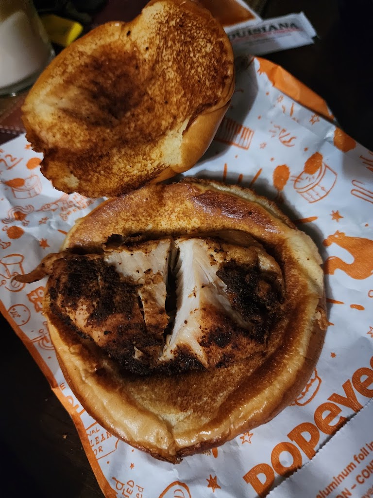 This was my first time here. I ordered 3 piece chicken platter and Im in love with Popeyes chicken. Perfectly cooked, so flavourful and juicy. Worth the price!