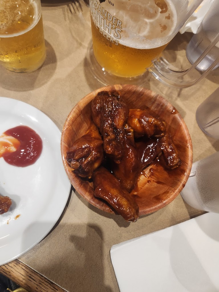 Ya it’s not that they were bad, they were wings that you would get anywhere. It’s that this is what “1lbs” of wings is for 15.75 before tax and tip lmao. I would highly recommend just going to literally any pub instead, where they at least have better seating than a Burger King. They also “can’t” mix a dry rub with a sauce in the kitchen, but they can bring the sauce out for you do it yourself.