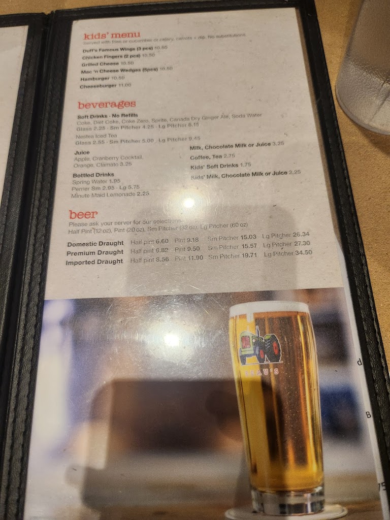 Duffs if always our preferred family restaurant for past 20+ years, great place, excellent food, best hospitality experience, we love duffs.
