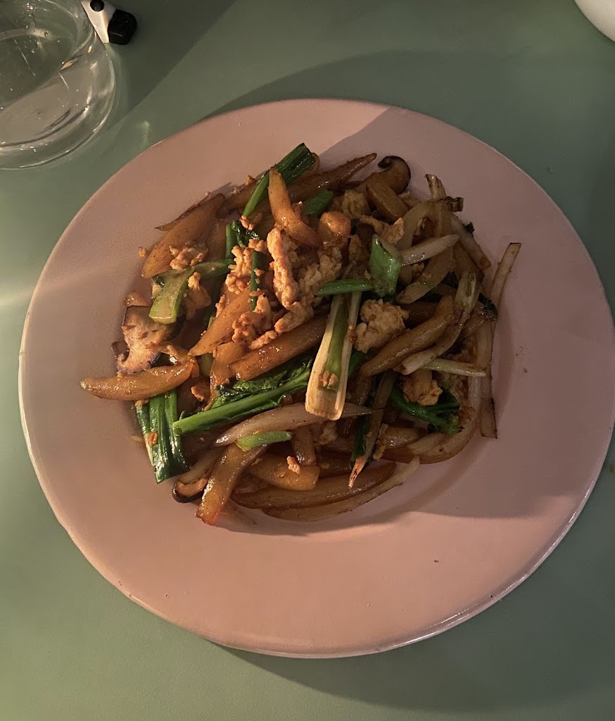 The atmosphere is good, I enjoyed the interior aesthetic, dark lighting, super busy and crowded with servers running all over the place. Got the Tea Eggs which for 10$ were plain and cold, tasted like regular boiled eggs. We also got the Chongqing Noodles (left) which tasted of soy paste and nothing else. It had a TON of chickpeas, like my bowl had a mountain of leftover chickpeas. The sauce on the noodles tasted as if you just put soy paste and soy sauce together, no creativity, just basic flavours with nothing elevating them (which I am expecting for a MICHELIN RESTAURANT.) The noodles on the right might not be on the menu anymore, but they re most similar to Silver Needle Noodles on the menu. The noodle portion was not enough and not equal to the ratio of stir fried vegetables. I enjoyed this dish more than the other as the noodles where in a more tear-drop shape which made them bouncier to eat but there just wasn t enough of them compared to the oily plain stir fried vegetables portion. Service was good even though it was super busy, it took a while for us to get our bill at the end though and servers would occasionally check in which is surprising for a restaurant of this density.