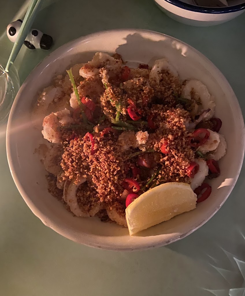 The dan dan noodles and typhoon shelter squid were both delicious. The blackbird HK French toast was incredible too. The atmosphere was cozy, although slightly loud. The patio is much quieter although the menu seems different than the one provided when seated indoors. Overall, a great experience! Staff were friendly too.