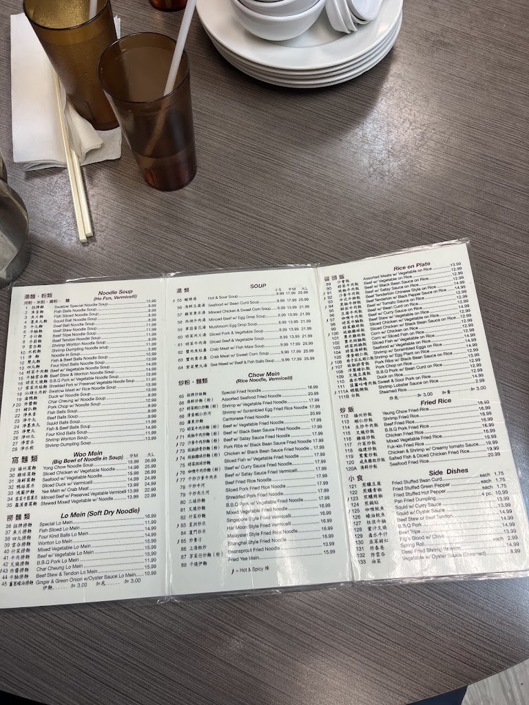 Was looking for a lunch spot with a friend who wanted Chinese food and came across this place. Fish Ball Soup (7.8/10). Round balls of fish cooked with slice pork, bok choy and scallions. Decent. General Tsos Chicken (6.8/10). Chicken was overcooked, but flavour was good. Rice Noodles with Shrimp (8.2/10). Shrimp, thin sliced bell pepper, onions with rice noodles and sauce. Really good. Beef Chow Mein with Black Bean Sauce (7.8). Crunchy noodles. Better food else.