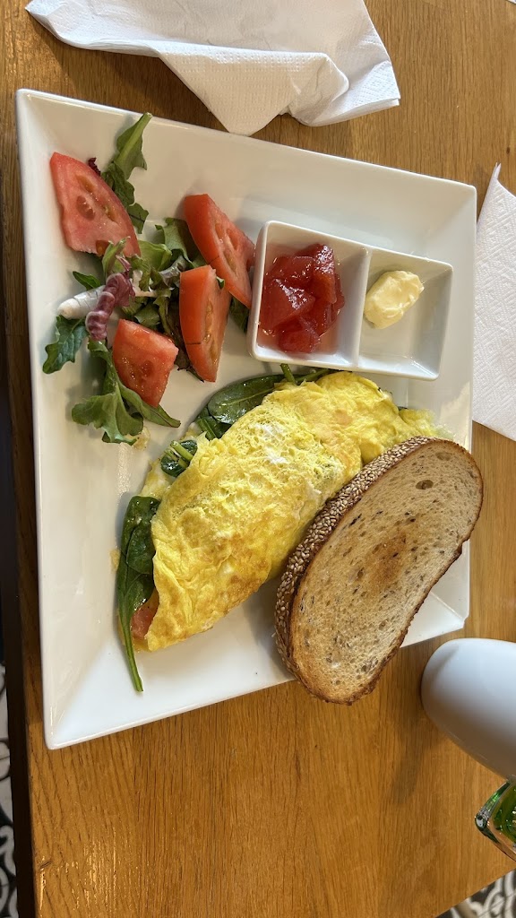 There is a lot of potential and the coffee was good. However the service when we ordered food was very poor. It was not busy when we arrived but they seemed very disorganized and as it got busier it became more so. Our table received 2 coffees and one dish immediately. The third coffee was forgotten, we had to remind them and 2 meals arrived long after the first. I would like to see them succeed but they have to up their game. Vegetarian options: There are vegetarian options available. Wheelchair accessibility: Not easily accessible by wheelchair.