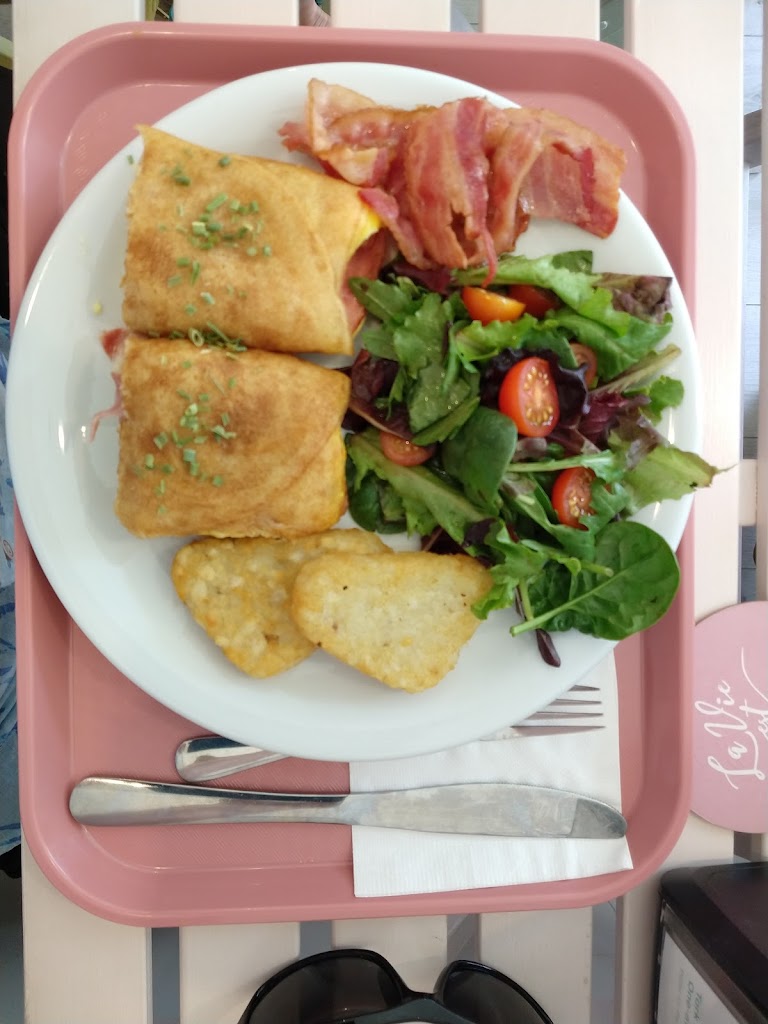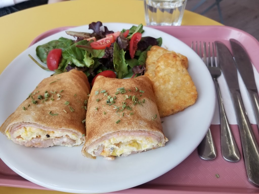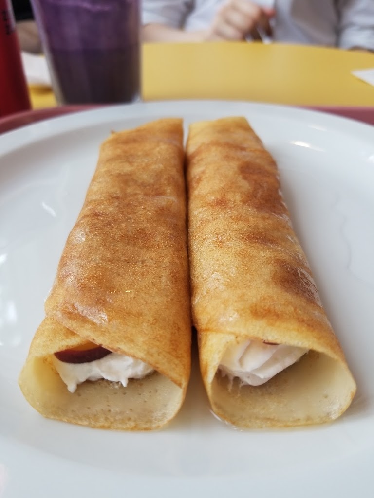 Such a cute place to grab brunch/lunch! It s small but plenty of space in the front and back. I had the ham,egg, cheese crepe and it was delish! I wasn t sure what to except but it tasted very good. Comes with salad and hashies, perfect portion. Brought my son who I shared with, they had high chairs. Will definitely come again to try the sweets :) Vegetarian options: Lots of options! Kid-friendliness: They have high chairs :)