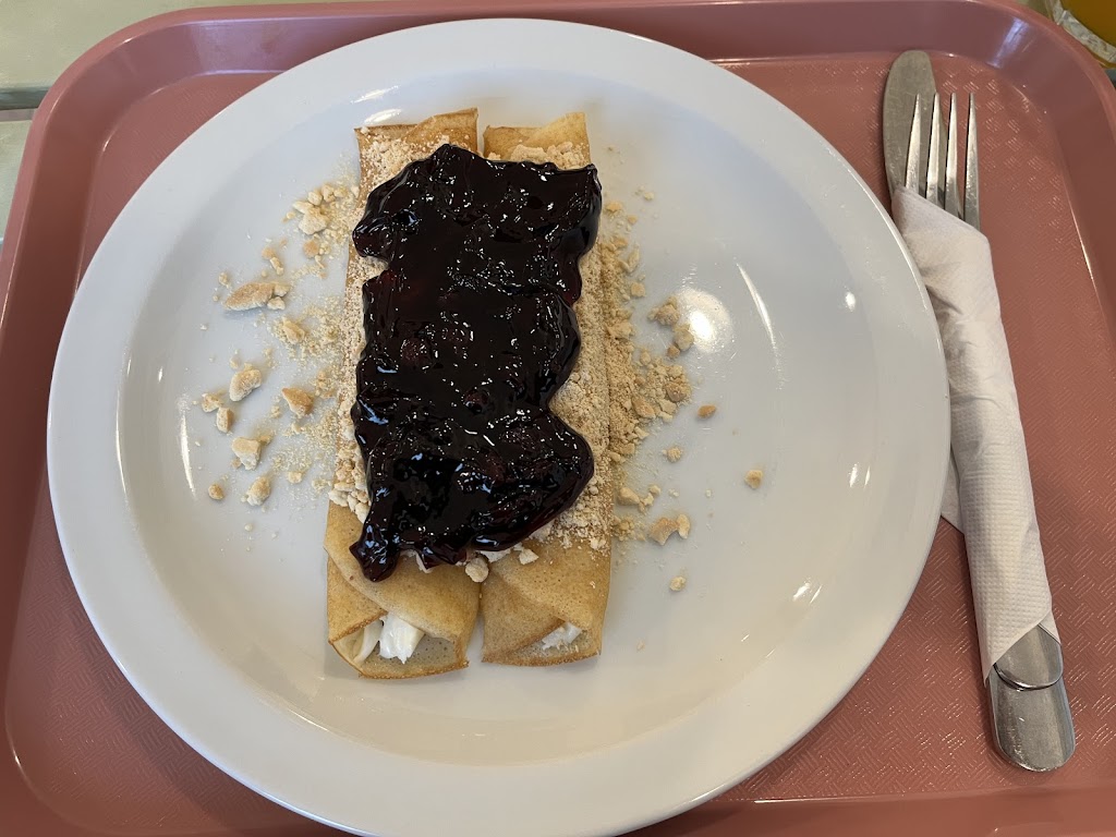 What a hidden gem! Everything here was amazing. Would revisit and highly recommend. Ordered the blueberry cream cheese crepes and the kimchi waffle. Highly recommend both and especially the kimchi waffle if you enjoy sweet, spicy, and savoury. Service was impeccable. Very helpful to understands allergy or dietary restrictions. Also had the malt oat milk chocolate drink and brown sugar ginger tea.