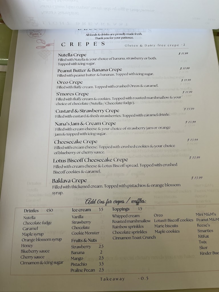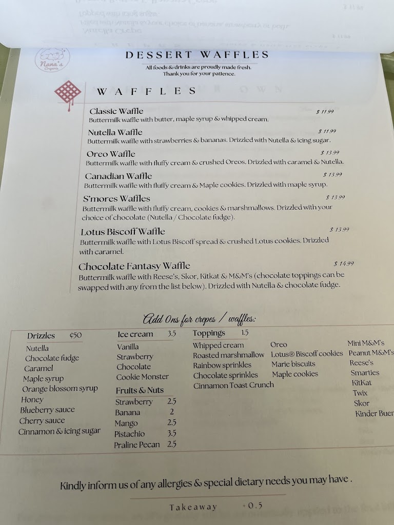 Fantastic place! Tasty food, nice street view, kind staff..everything is perfect in this place..nana s legacy is living for good with the team! Ps: try lotus biscoff waffle, it s a masterpiece!