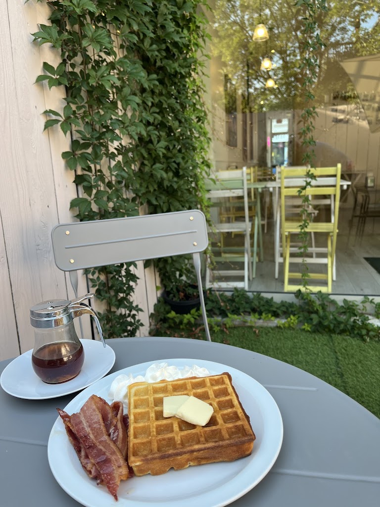 A hidden gem with beautiful back patio. The space is bright and airy and I love the decor. The crepes are also soooo good! The perfect amount of sweet and the staff are all very nice.