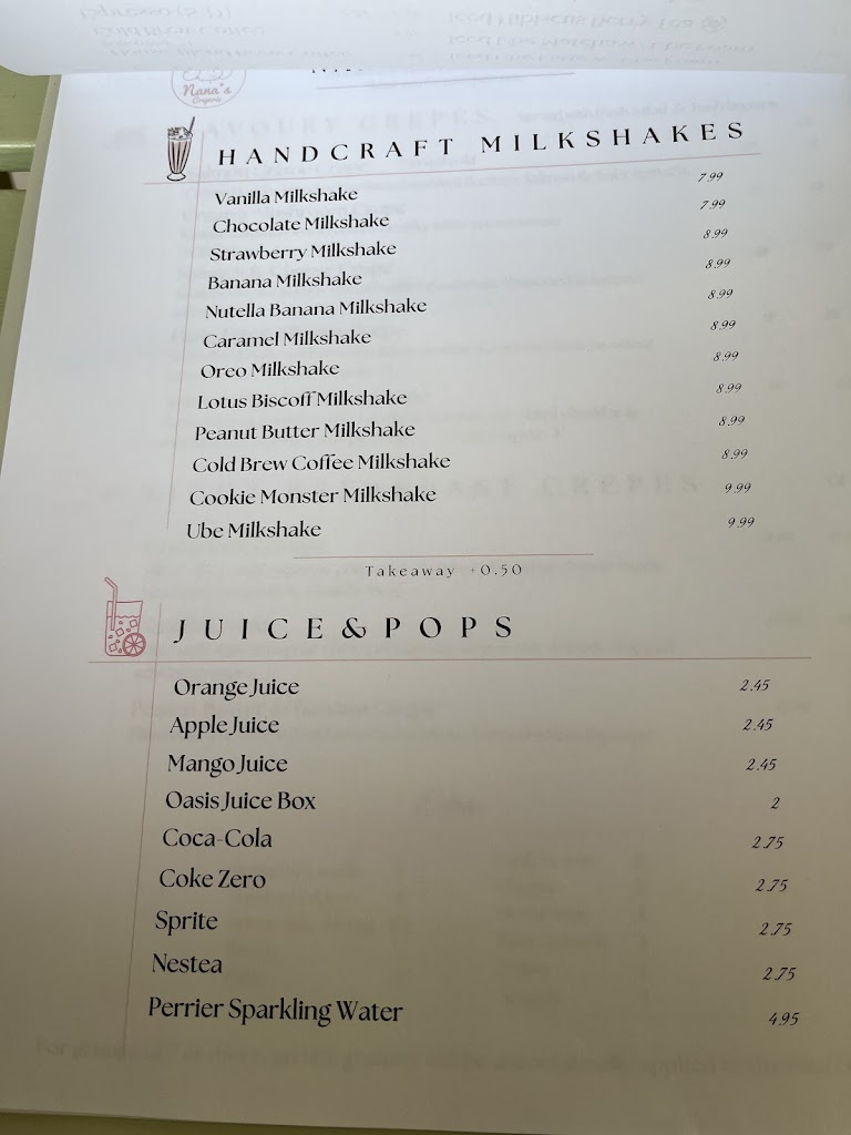 Great friendly service, good food, my kids thought their milkshakes were especially good - wide choice of options for food. Go Nanas!