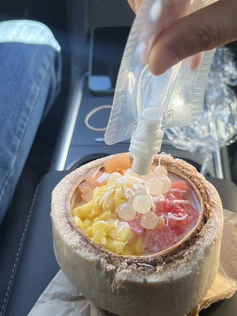 Actually, my friend got it for me and enjoyed it. I really like both Mango and Mixed fruit ones. They taste very fresh. It can be bit pricey feeling but O got so full eating almost half-2/3 of one coconut