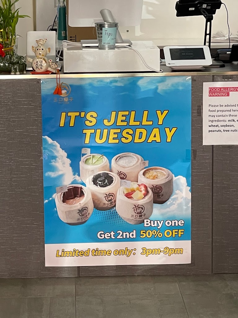 The coconut jelly tastes great and the store staff is also very nice. Recommended!