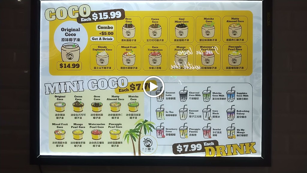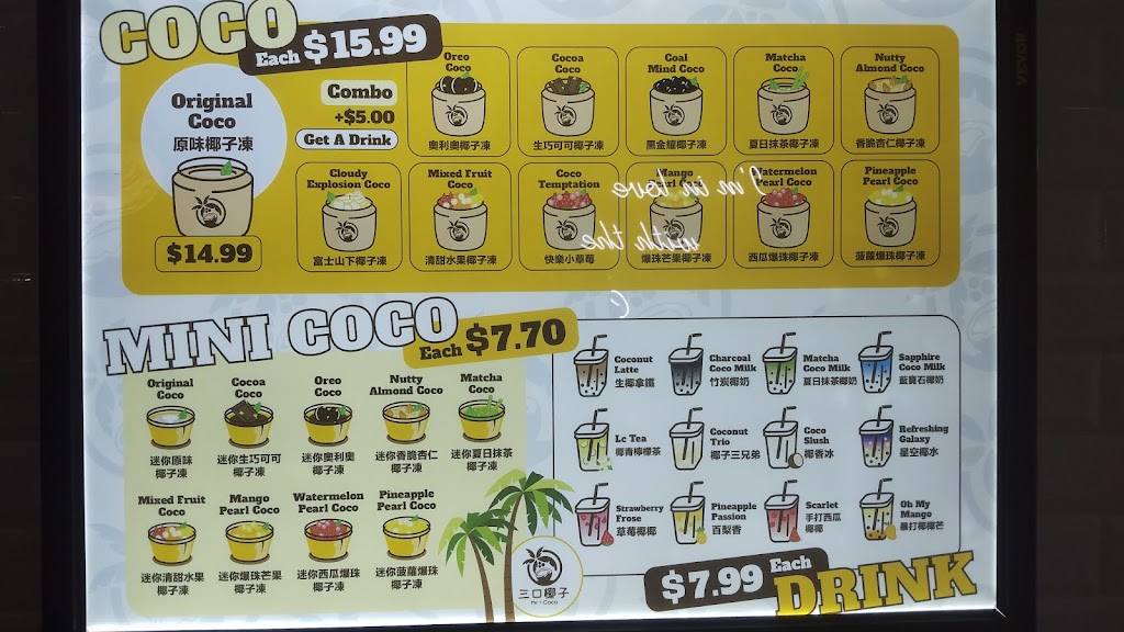 I know this shop for a period of time. We finally visit. The Cocos are made from the whole coconut which is costly and eventually the whole dessert is a little bit pricey. The taste is good and the coconut drink, Coconut Trio, has young coconut juice, young coconut meat and coconut stuffings.