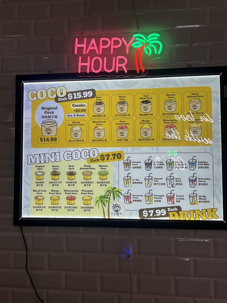 OH MY GOSH!! the mango coconut dessert was soo good. The jelly is soo delicious and at the end you can scrap up the inside jelly of the coconut. It is a bit pricy but that’s everything now. Definitely worth the visit and can’t wait to go back. Tuesday evenings I believe they have a buy one get one 50% off. Good day to go and give it a try. Also we tried the matcha coconut bubble tea. Which is good if you’re a coconut lover