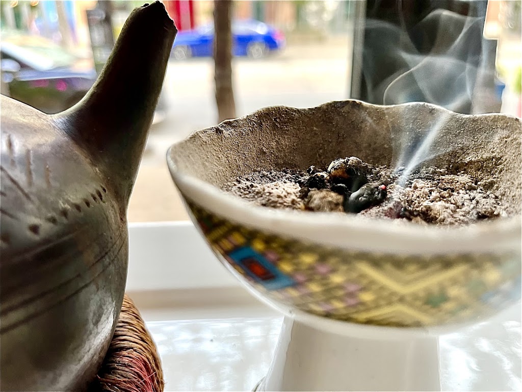 If you are looking for a special place to share with yourself, with family or friends - Nunu Ethiopian Fusion cuisine sets the mood. On my first visit to Nunu, I settled by the window to enjoy a traditional Jebena (ጀበና) coffee. I was treated to the sights, sounds and aromas of pan roasting coffee beans directly in front of me. This would later transform into the liquid elixir known as Jebena coffee. The traditional Ethiopian coffee ceremony truly engages all the senses: the sight and sound of the roasting beans clanking against the metal pan, the smell of the roasting beans wafting heavenward, and touch - as one waves the steam over to the face to more fully appreciate its heat and aroma. Once the roasting was accomplished, the beans were then taken to the back to be ground and brewed. The Jebena coffee showed the strength of an Italian espresso, with a softer, more rounded edge or finish to it. The Ethiopian Jebena coffee is fully full-bodied but without the brazen kick of an espresso - the Jebena coffee showing more refinement and restraint of character. Visually, as this was my first time partaking of Jebena coffee, I was amazed by the sight of the incense dancing in every direction (accompanying the coffee). Together with the very friendly service, stylish decor, dim lights, and African trance music in the background, it seemed like I was transported to another world. On my second visit to Nunu, I ordered the Beef Couscous (unfortunately, they were out of the Lamb Couscous). It was the best couscous I have tasted to-date: light, fluffy, and flavourful. Really, really good. On the third visit, my dear friend and I enjoyed a Vegetarian Platter which was more than ample for two. The place was packed on a Friday evening. The atmosphere was hopping, lively, and conducive to allow for all manner of conversation. It was the perfect place to spend a most engaging evening. Thank you Nunu Ethiopian Fusion.