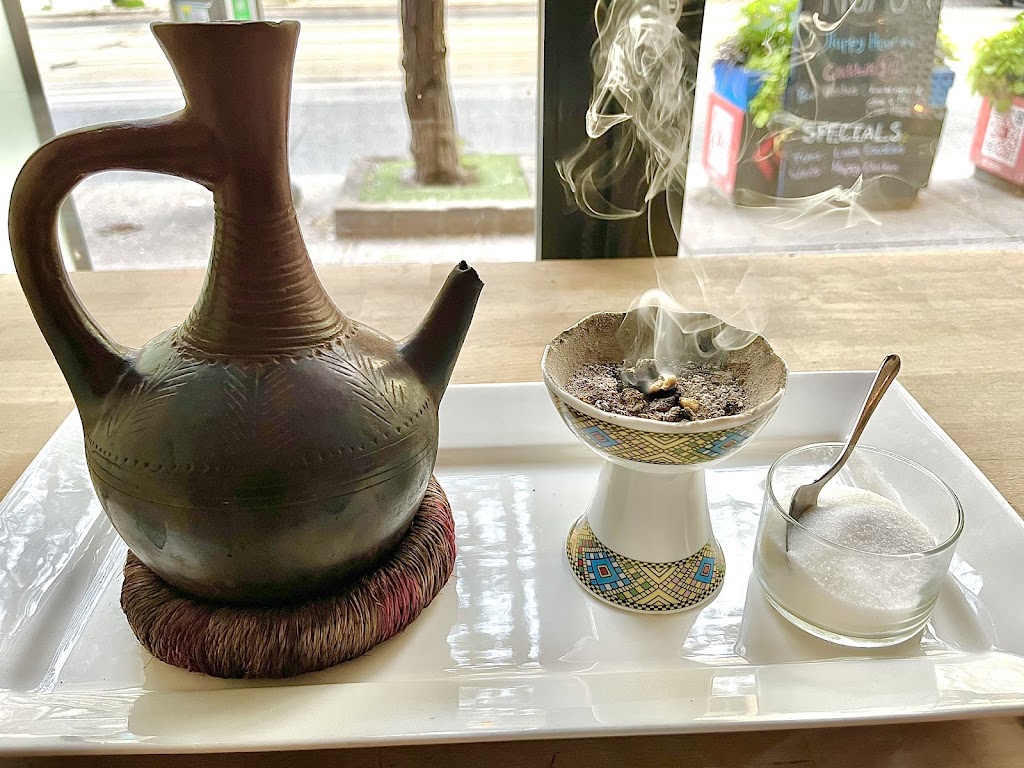 I really like this place. Amazing food, great service. A little bit pricier than other Ethiopian restaurants but the dining experience is very enjoyable. We always have the vegetarian platter and it is delightful. Their special cocktail is also a must-try (comes with their home-made juice and lots of spices!). The coffee ceremony was also fun to witness if youre up for that, very aromatic but wait after youre done eating as the scent is really strong, very perfume-like, and would interfere with the meal in my opinion.