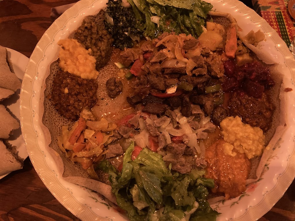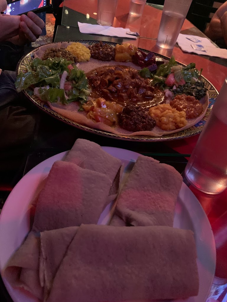 This was my first time trying Ethiopian food, and it DEFINITELY wont be my last. 3 of us shared the meat veggie platter with chicken, and each bite was so flavorful. We left so satisfied.