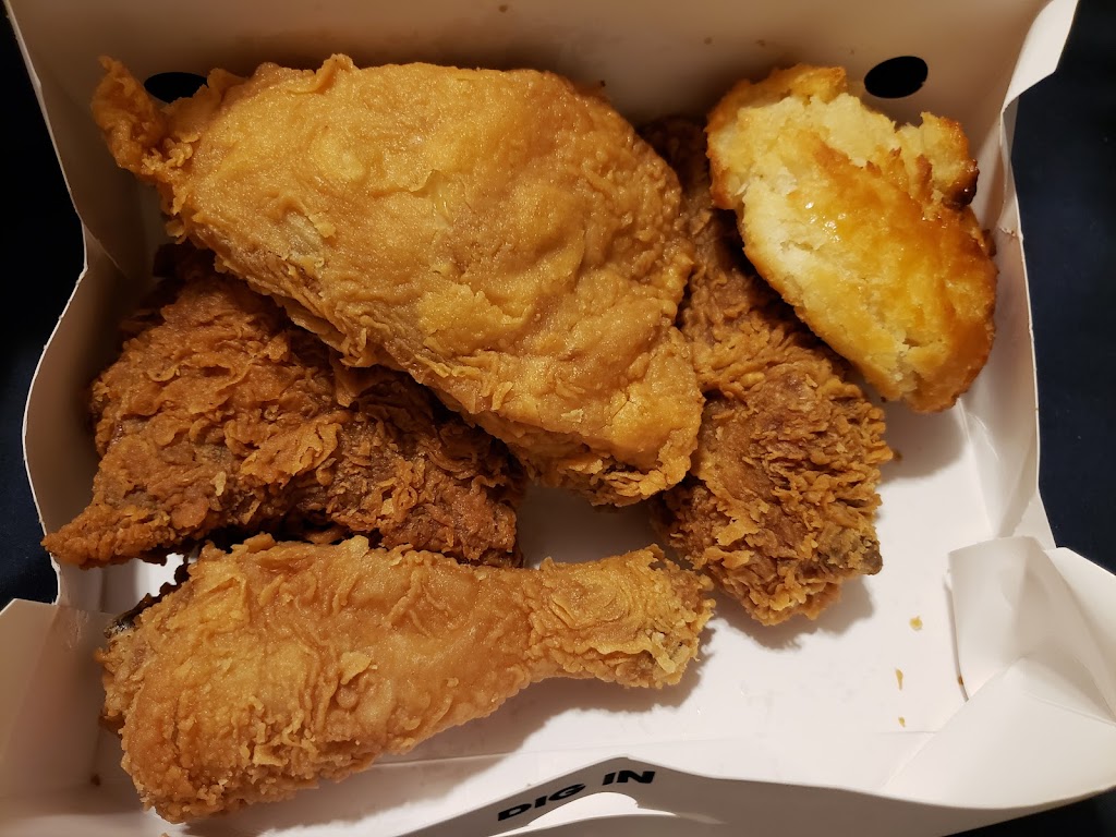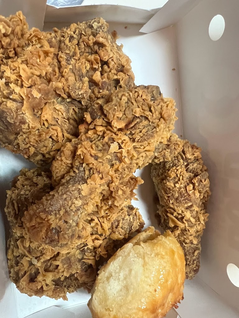 Have take out from this shop and the fried chicken was a big let down. Not only were the drum sticks on the smaller side, all 4 pieces of mixed were all over cooked and dry. (Thigh and legs) The biscuits were acceptable so was the mashed and coleslaw. Will definitely not be going back to this particular shop as KFC would have been the better choice.