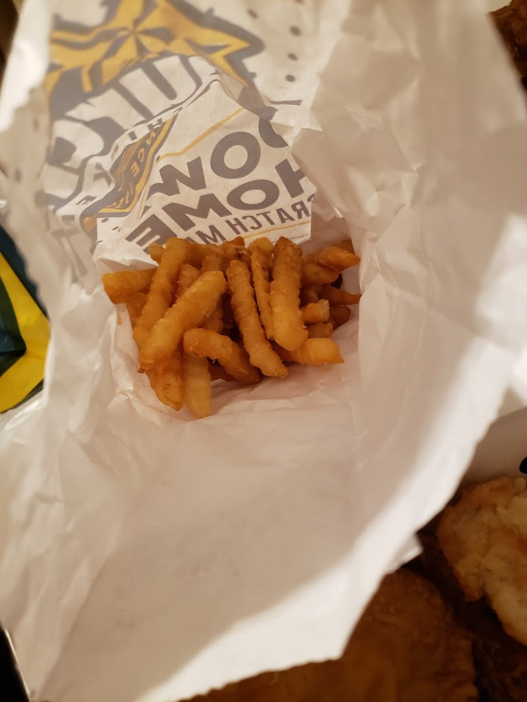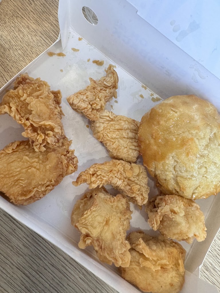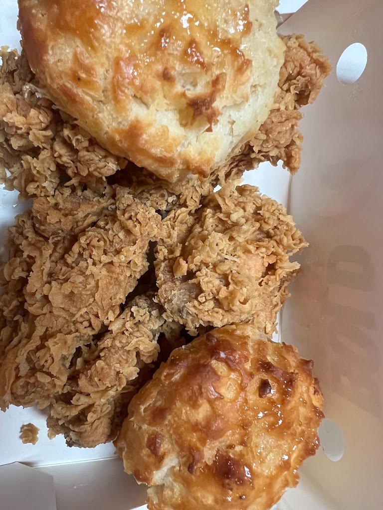 I got the Mexicana combo and an extra biscuit and it was good. There was no overpowering flavor but it tasted good. The chicken was very juicy. I loved the fries and the biscuit. I think the biscuit is the best part of the meal honestly. It has a slightly sweet and crunchy exterior and doesnt feel super dry like Popeyes. Its about $14 including tax for a combo, but it is bigger than most places.