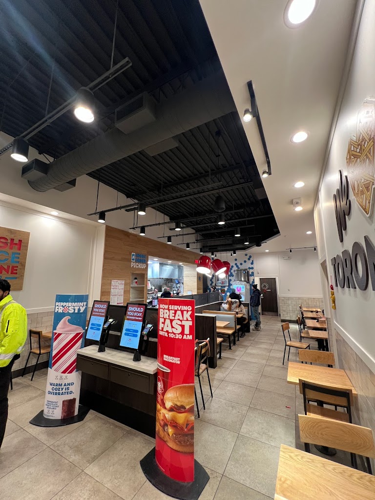 Brand new Wendy s on the corner of King and Dufferin offers quick and convenient food options to the hard working respectable people of parkdale. There are digital kiosks to order or you can get in the line if new technology scares you or you don t have a credit card. This location has a Coca Cola remix machine which is a rarity you will not find another machine like this in parkdale. Wendys does not cut corners when it comes to quality that is why all the fresh NEVER frozen patties are square. The frosty is a delicious treat that can be enjoyed year round i would recommend getting a large and sharing it with your lover. This location is quite small and intimate perfect for a quick bite on your lunch break or a convenient take out dinner for your family. All the staff are highly skilled and kind professionals who will assist you in navigating the menu if you haven t been to a Wendys before. There are many burger joints in parkdale but none of them can compare to shining beacon of hope that is Wendys, RUN don t walk to this location and enjoy a delicious meal that Dave Thomas (founder of Wendys) provides to the people. I will most certainly be back soon!!!!