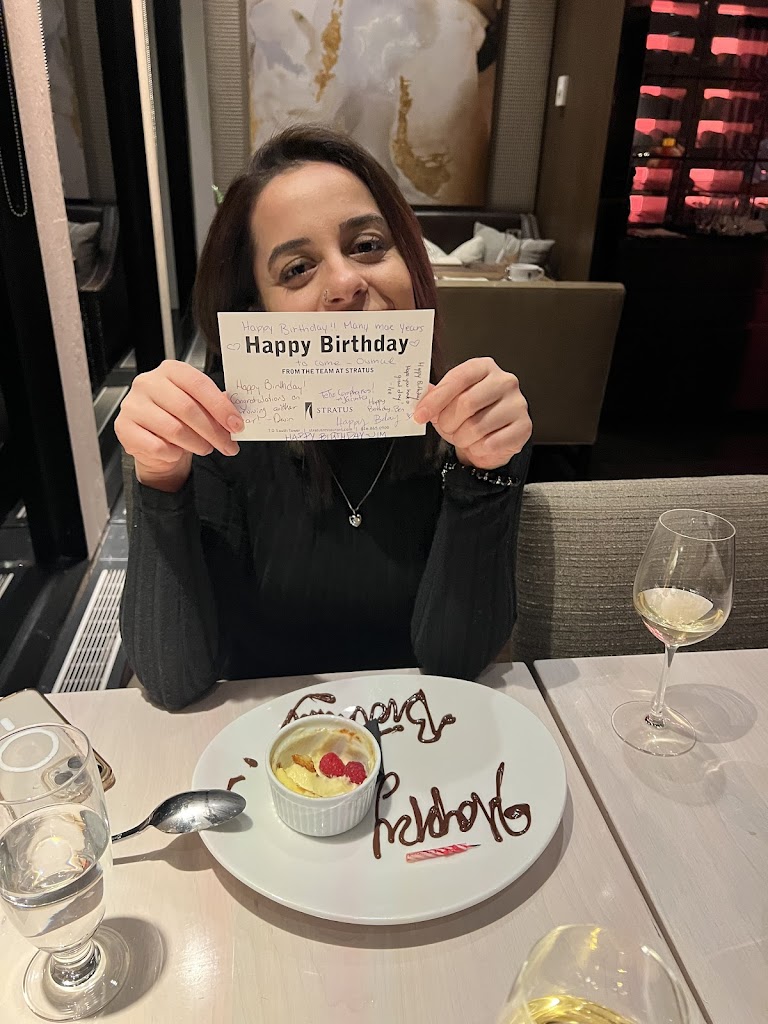 Went to Stratus for dinner for my wifes birthday. From making the reservation, to the service, to the food to the view, everything was exceptional! I had made special requests and not only did they meet them, but they went above and beyond. Thank you to the whole team for making my wifes birthday so special. Her and I are very happy. It was an amazing experience and I will recommend this place to all my family and friends. Keep up the GREAT work.