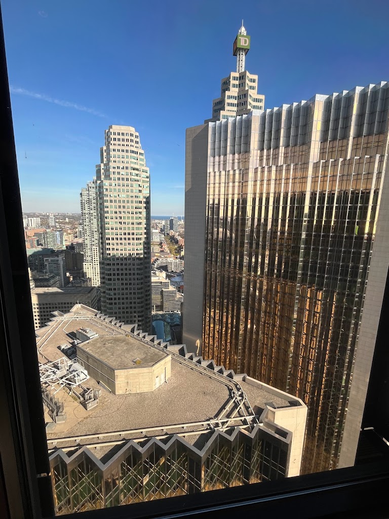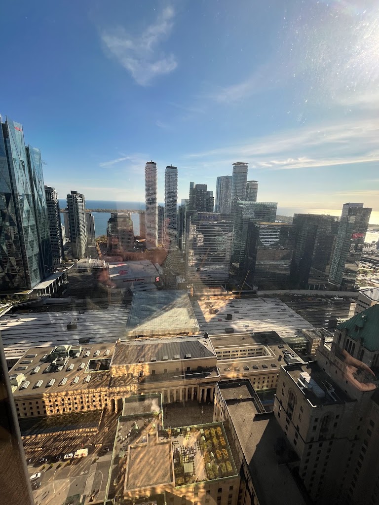 Great view, great service, and the food never disappoints. Ive had breakfast, lunch and dinner. Exceptional view south across the Scotiabank Arena to the lake. Fantastic place for a casual business meeting.