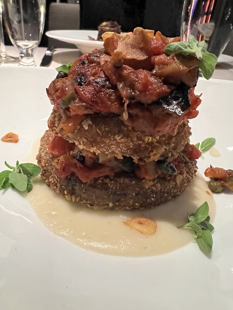 We recently celebrated my wife’s birthday at Stratus, and while the setting and service were exceptional, our dining experience fell short. The Positives: First, the view from the 36th floor is stunning, creating an elegant ambiance. Our servers were attentive, friendly, and went above and beyond to make the celebration special. They even decorated the dessert plate and presented a lovely birthday card for my wife, which added a personal touch. The interior lighting and decor were pleasant, though the bright lights near the windows were somewhat distracting; perhaps chosen to enhance the view. The Food: Unfortunately, the food didn’t match the level of service. I ordered the Eggplant Caponata Pave, which was excessively oily and dry—almost as though it had been pre-prepared, stored, and simply reheated with sauce. It was nearly inedible. My wife’s Butternut Squash Farro Risotto was soft and well-cooked but lacked flavor and left us disappointed. For starters, we tried the Steak Tartare Tostada and sweet potato fries. While the tostada was average, the fries were overcooked and partially burnt. Final Thoughts: It’s disappointing that such a fantastic team would serve food that doesn’t live up to their professionalism. We truly appreciated the hospitality, but the quality of the dishes didn’t justify the experience. Thank you to the team for their kindness and attention, but the food definitely needs improvement.