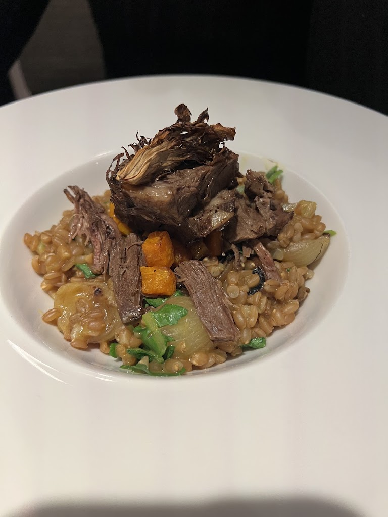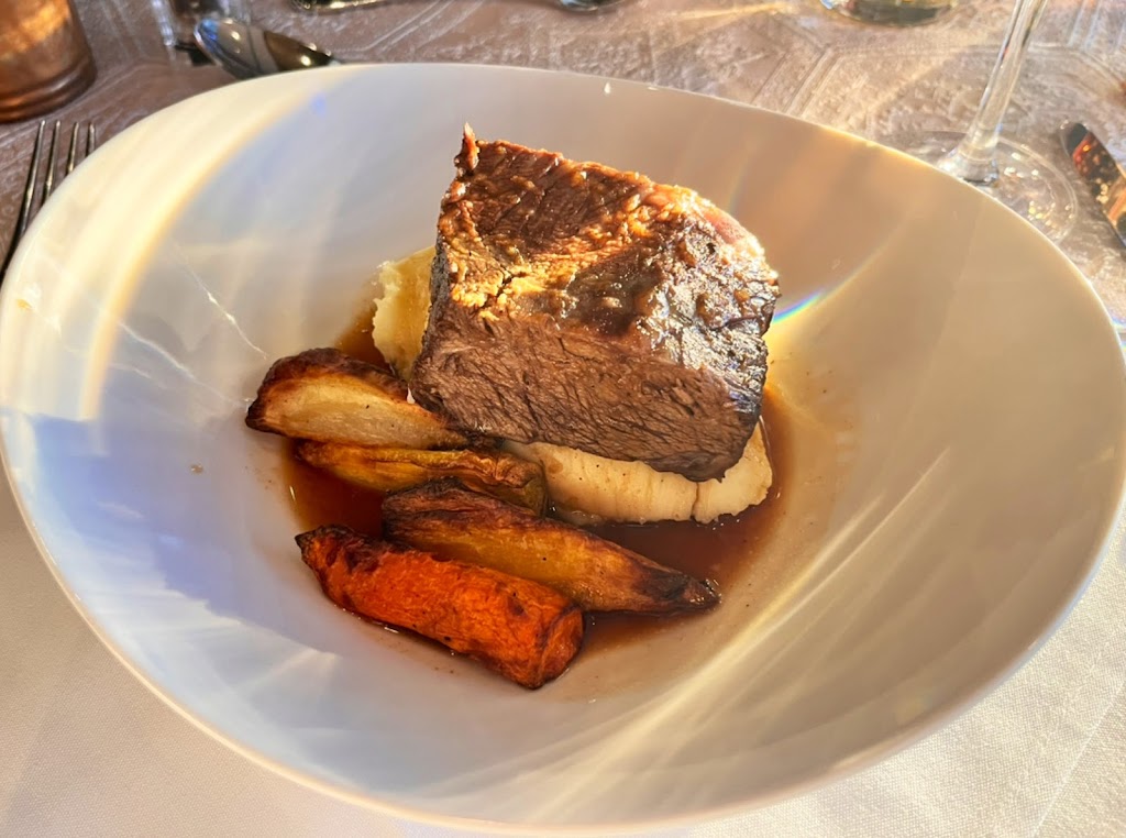 Have you ever had spaghetti squash? Well if you haven t you really should try it as it s a great alternative to pasta, but I digress. If there was such a thing as spaghetti beef this would be it. Literally take a fork to this piece of short rib and it comes apart like spaghetti squash. Delicious and tender on a bed of succulent mashed potatoes and veggies and you can t complain. I mean you can, but why? Service was excellent. View was probably one of the best in Canada. Company (which for all intents and purposes doesn t have anything to do with this review) was amazing. Just an all around excellent night!