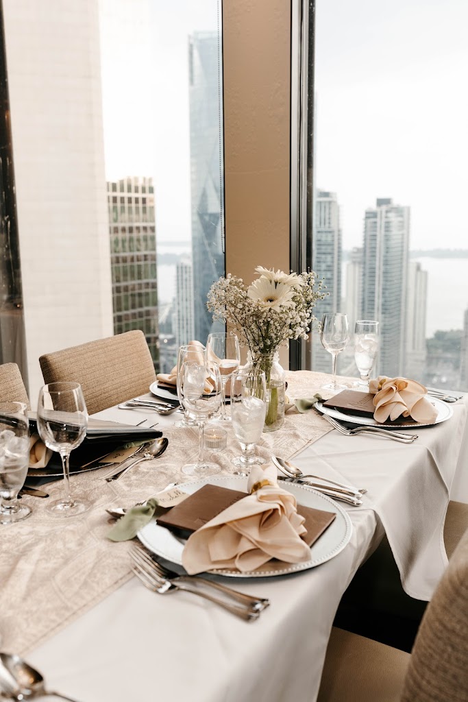 My husband and I held our wedding reception for ~80 people this past weekend and everything was flawless! Everyone kept complimenting the service, food and wonderful view of the city. Also, it does work out to be quite a bit cheaper to host a wedding reception here compared to other restaurants downtown Toronto. Samantha, the event coordinator, is extremely efficient with her email corresponding. I highly recommend Stratus, especially for a wedding reception! :)