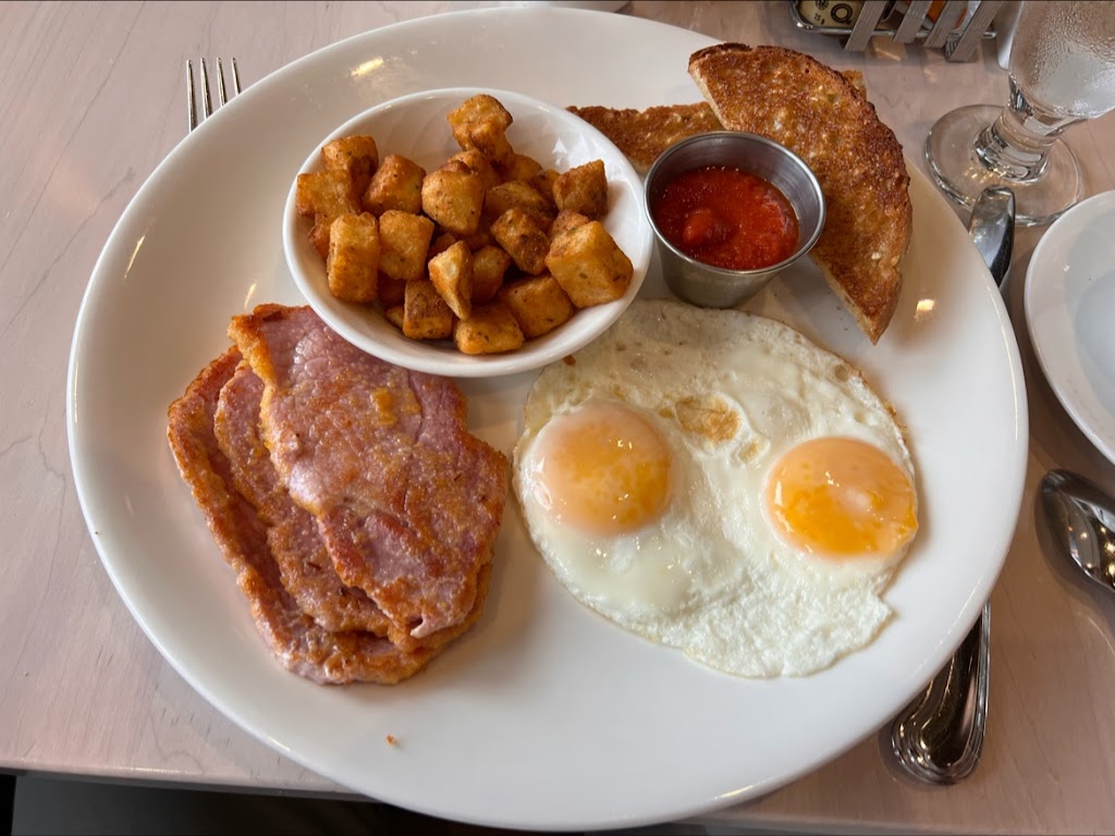 Coffee 1/5, breakfast 1/5, atmosphere 4/5, service 3/5. I mean you gotta step up the food, presentation, and at least a good coffee. Great location. I get business vibes, but hear me out, food presentation you get a cheapest diners! 30$ for a breakfast that looks like $5.