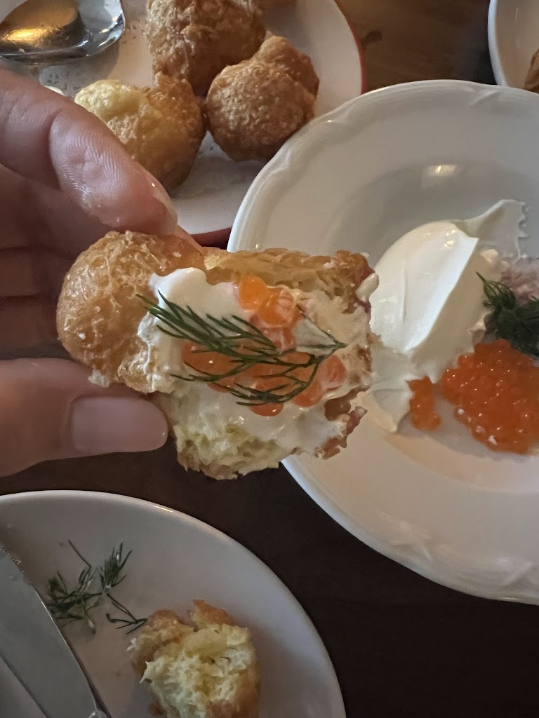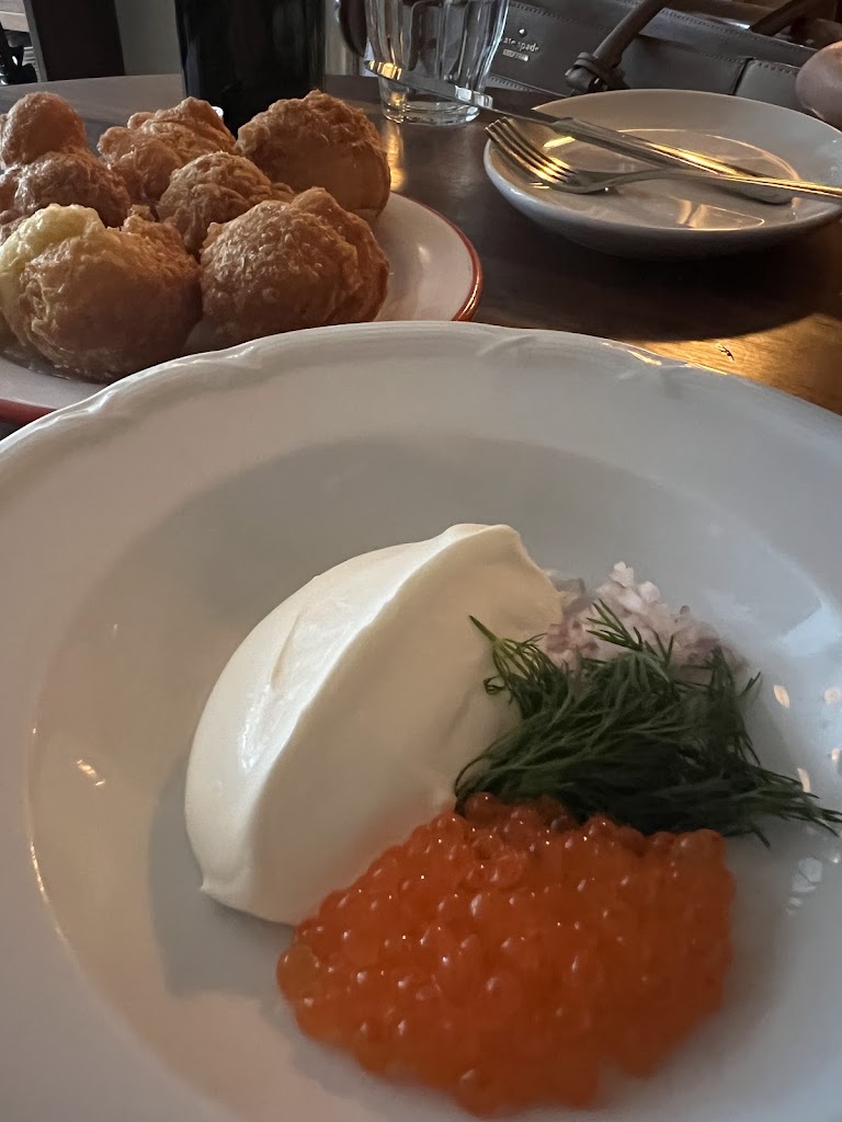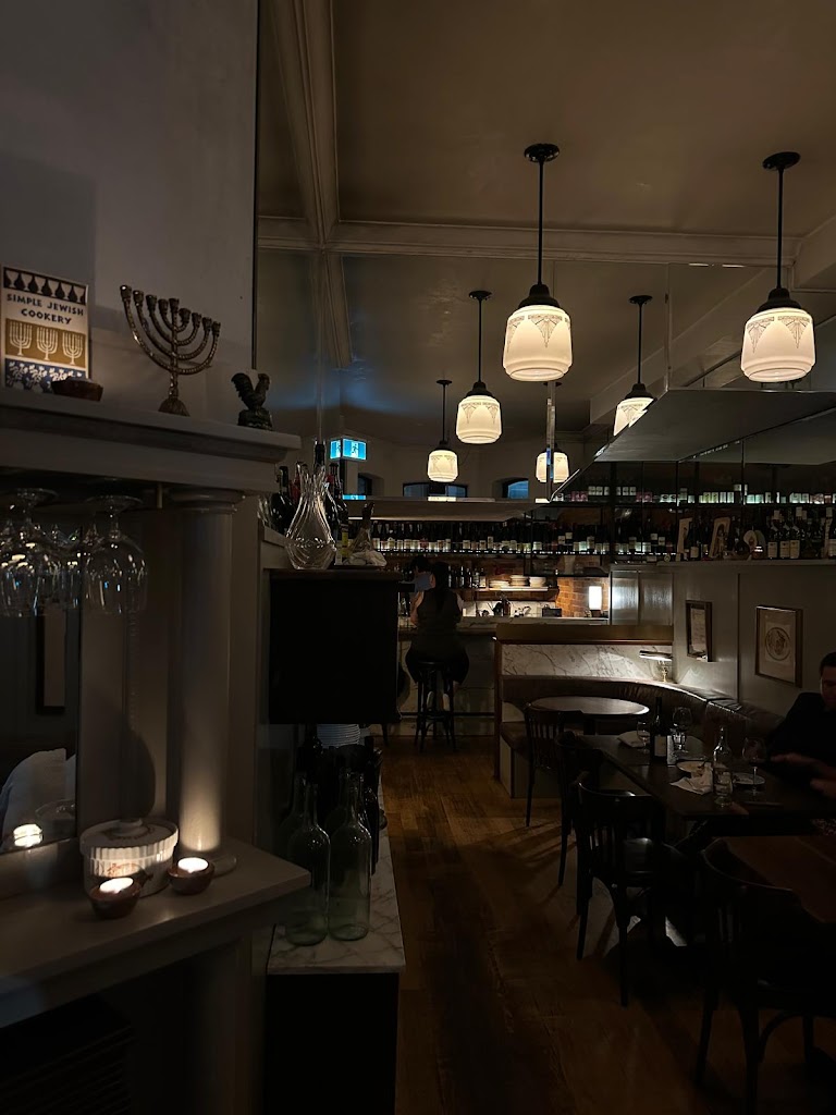 Cute and cozy with excellent food and service. Lovely atmosphere but its small so be sure to make a reservation. Our server walked us through the menu (which changes frequently) which all sounded amazing - but we settled on the pommes dauphines*, latkes and raw tuna*, shrimp-challah canapes*, insalata bianca (radicchio and endive salad), saute gourmand aux lentilles (skatewing), ditalini with lamb ragu and cornish hen with mushrooms and cabbage. Everything was delicious, but the cornish hen was the teeniest bit dry if I had to nitpick and the portion size felt a little small. The latke and raw tuna came in a plate of four so I appreciated that they flagged it and asked if we wanted a fifth piece so everyone could have one (pro rated on the bill). *my favourites And of course we had to get dessert - the chocolate ganache hazelnut tart with salted caramel, and sorbet with pistachio crunch, meringue and grapefruit. Both were incredible, not too sweet and the perfect end to a delicious meal. Service was attentive, thoughtful and personable. Our group of five was seated in the corner near the bar and kitchen which we thought would be a quieter area since it was further away from the other tables. However, earlier in our meal (when the restaurant wasnt as busy) some of the staff were having pretty loud conversations with a patron at the bar (seemed to be a friend of theirs). I cant really fault the staff for having fun and enjoying themselves though! Its pricier but pretty good value, I would come back for a special occasion. 4.5/5