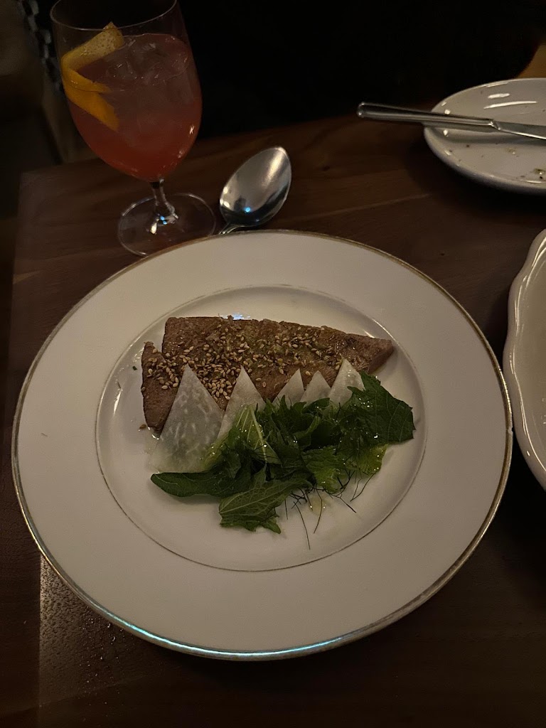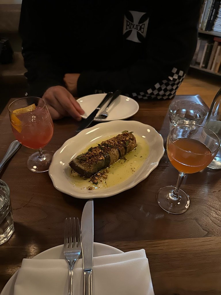 This restaurant is beyond special. For cocktails we got the Peach Pink Spritz ($18) and Tiqueled Pink ($18) both were incredible but we both ended up ordering a second Tiqueled Pink because it ended up being one of our favourite cocktails in the city, insane. To start we got the Involtini daubergine & truite ($23) and the Canadian bluefin tuna belly, zest & zhoug ($32) such fair prices for some of the best dishes I ve ever had. For the mains we got the Smoked beef ham & fennel ($26) and the BBQ Pork Neck with pickled chanterelles ($46) TO DIE FOR!!!!!!! The desserts were equally as impressive, we got the financier and the chocolate mousse and I would highly recommend ordering both. This place is a 10/10 and one of my top 5 restaurants in the city, for sure!!