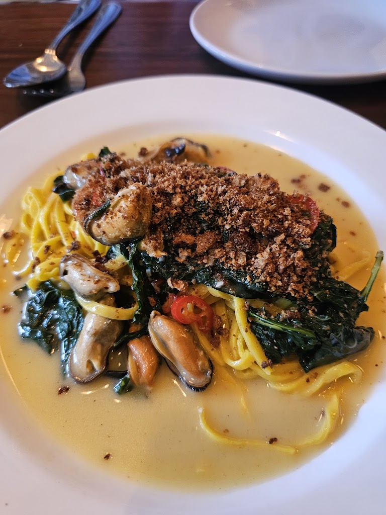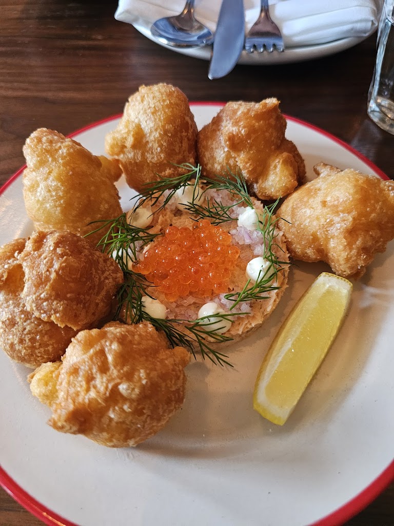 Great menu with a good variety of choices, incredible service as well. Personally I thought the pappardelle was just way too salty but could have been a one off and a few other dishes were slightly off the mark (raw mushrooms with an soft boiled egg, overpowering cocktail sauce for brown butter scallops), cod fritters were incredible