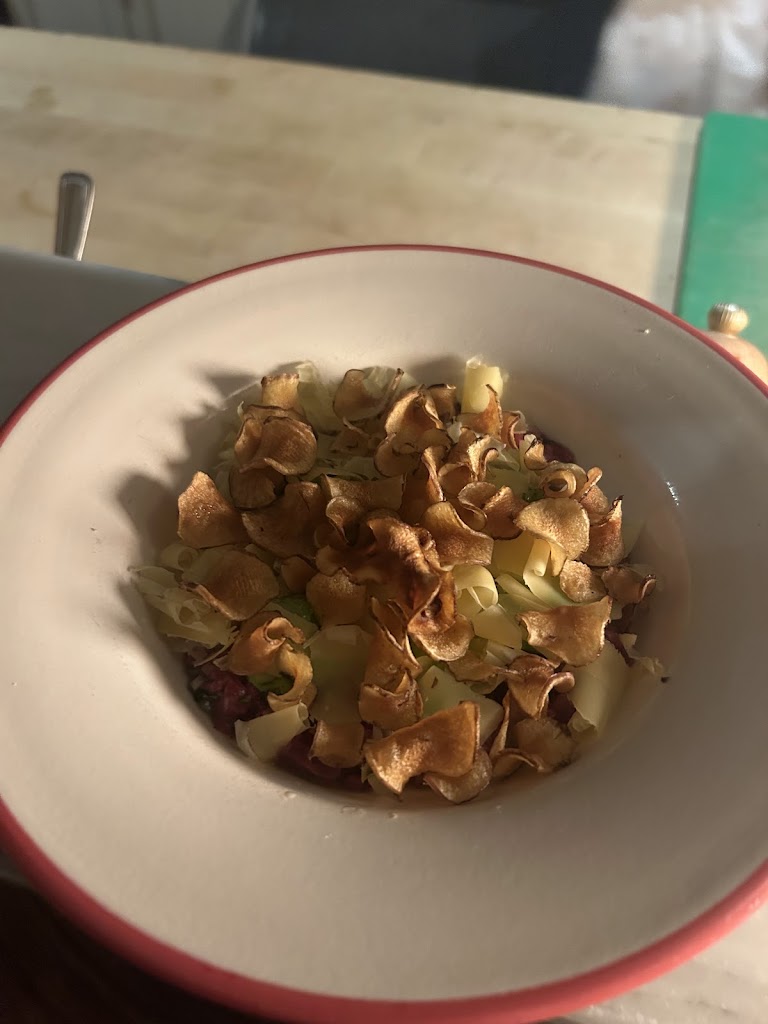The flavour combinations were great. Didnt know what to expect with Lamb tartar, but it was excellent, no gaminess. The favourite was the fried green beans with yogurt.