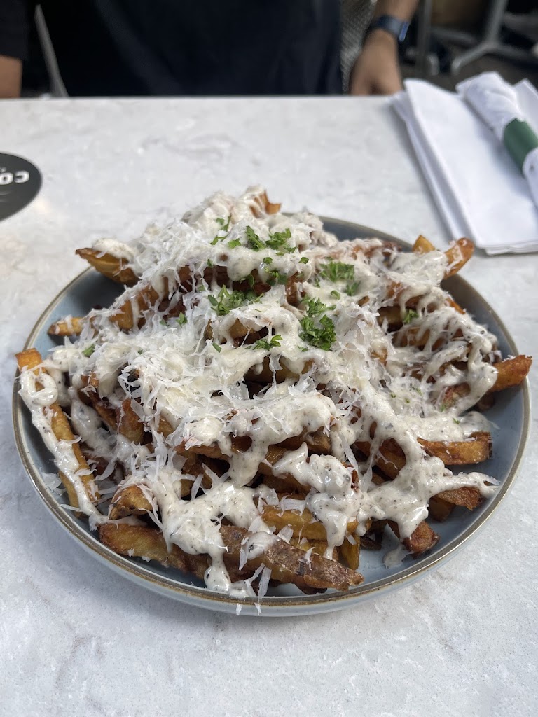 Absolutely loved this restaurant! Situated in the heart of downtown Toronto, it boasts a gorgeous patio that offers a perfect blend of urban energy and serene ambiance. The food was nothing short of amazing, with each dish showcasing fresh, high-quality ingredients and expertly crafted flavors. The wide range of drink options, from exquisite cocktails to an extensive wine list, ensured there was something to complement every meal. The customer service was equally impressive. The staff was attentive, knowledgeable, and genuinely friendly, making us feel welcomed and well cared for throughout our visit. Must have dishes would Be the bang bang Prawns, parmigiana fries, Korean BBQ style Short Ribs, and of coarse their. Hamburgers!! Whether you're there for a laid-back brunch, a cozy dinner date, or just hanging out with friends, this place is a fantastic pick for a memorable meal.