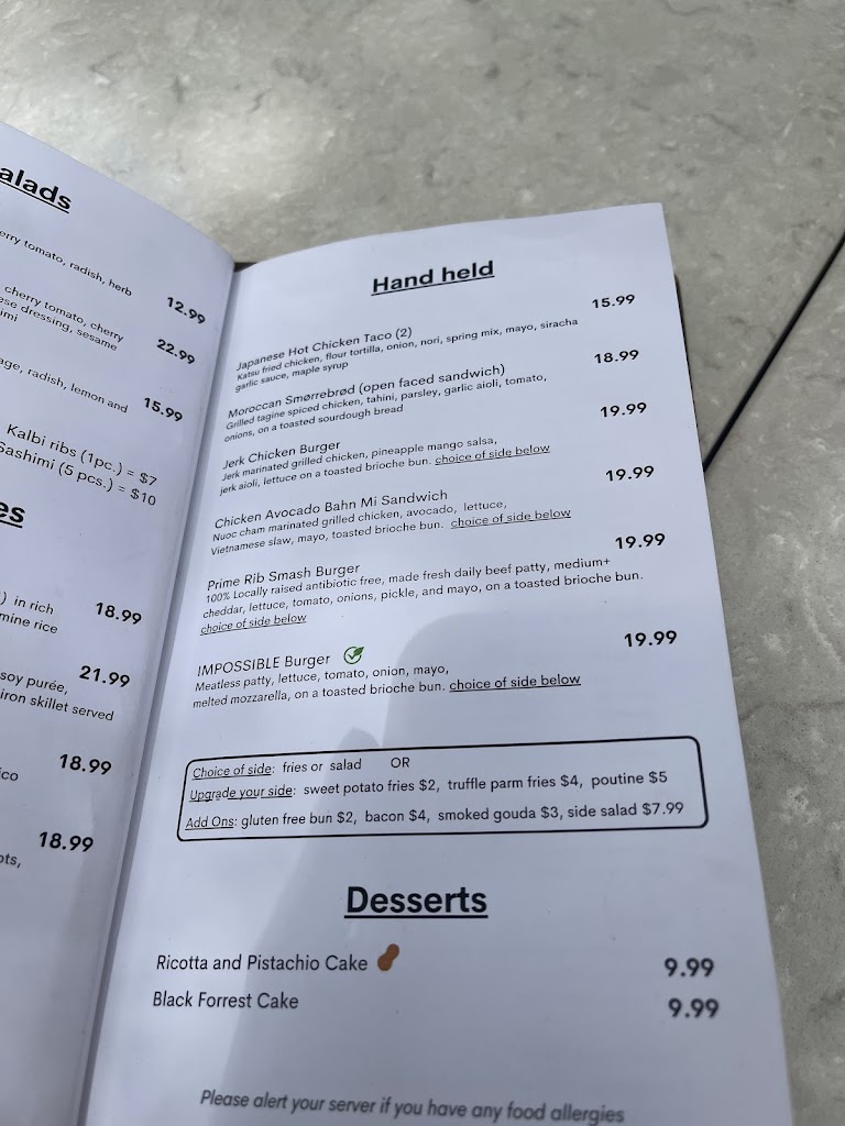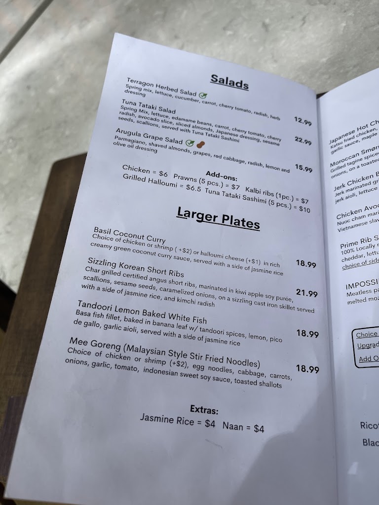 Tasty, but pricy. Everything we ordered tasted good. We ordered Bang bang prawns, Truffle parm fries, and Basil coconut curry with chicken (Drat! Forgot to take a picture of the curry. Just imagine a bowl of rice next to a mini cast iron serving dish filled with curry that has sliced mushrooms, sliced red and green bell peppers and sliced chicken, all served atop a wooden platter). The prawns were very nice, the flavors excellent. The doneness of the prawns themselves were not perfect-- a smidge overdone, but still very good. The fries were everything fries should be: crispy on the outside and fluffy on the inside. While the coconut curry was good, not spicy. All three dishes had good presentation. Their food is expensive when you take portions into consideration. Servers were friendly.