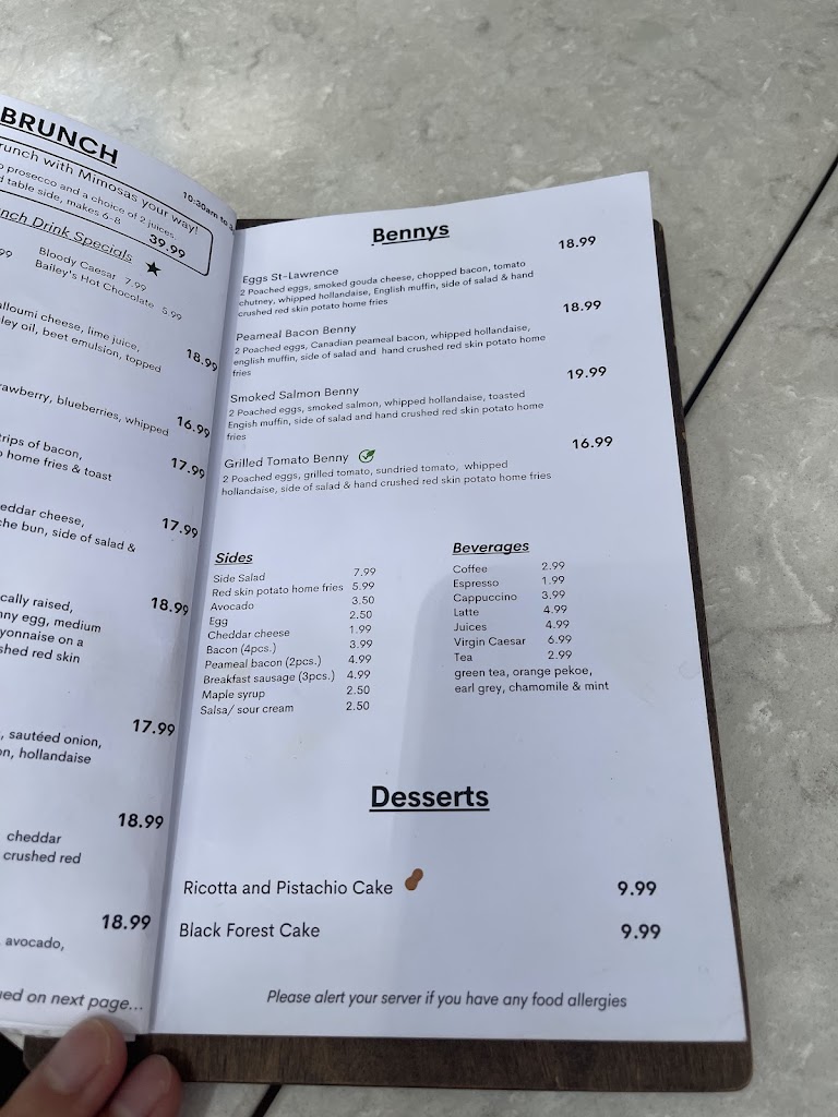 I had the PC breakfast. The only problem I had was that I needed help with my food. I gave my mom some of my potatoes. She had to try some bacon and peameal bacon. One bite from the sausage and it brought me back to Vancouver by the boardwalks at this nice restaurant. And the coffee, O...M..G. was so flavourful, packed with a punch of good morning. The wait staff was amazing, supper friendly. We didnt have to wait long for our food, actually our food came quick. Going back for sure, we were a Paddingtons kind of bunch, lol for years we have been eating there. Cant wait to try the patio. Dietary restrictions: I have fruit allergies, they were so accommodating.