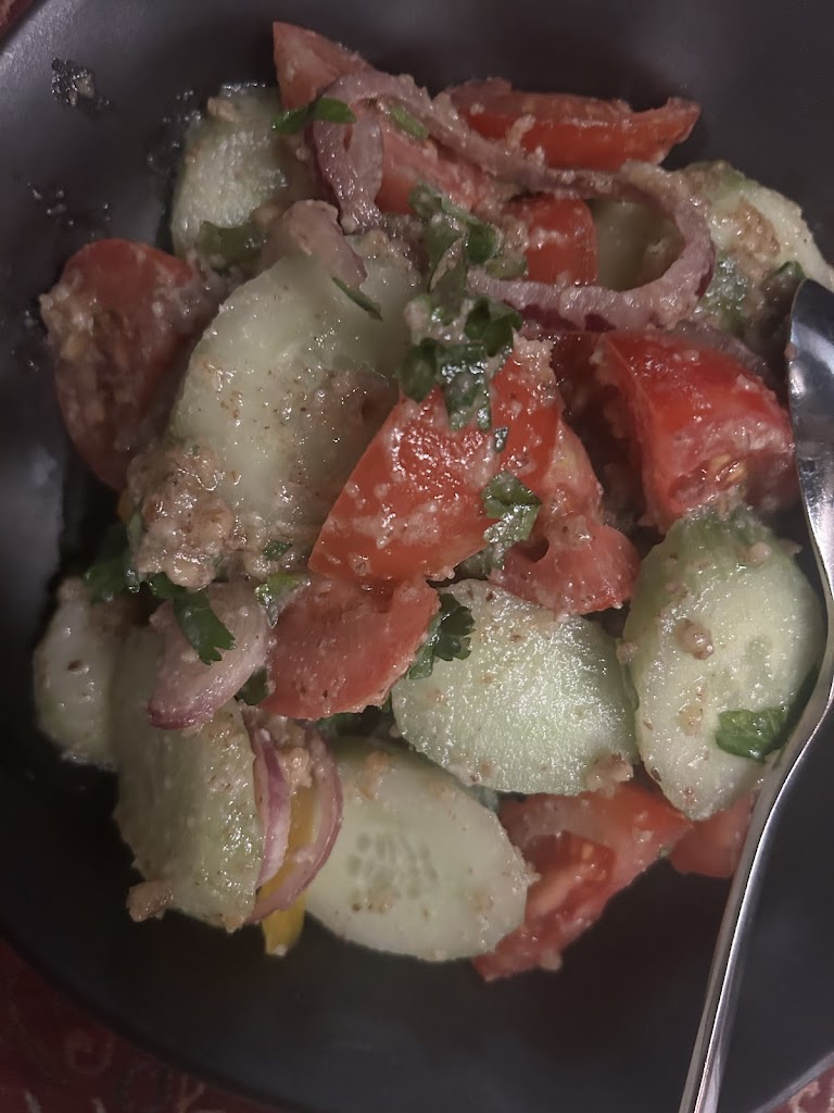 The food is YUMMMYYYY The traditional salad actually has kakhuri oil !! Stunning service from the guy who just started working there. (I don t like that tkemali is sold separately) Food