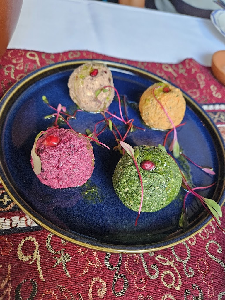 Absolutely stunning restaurant with great food. All authentic Georgian food. The presentation is outstanding. Service is excellent. Ask for George or Luca to get help with menu selection. Overall, great experience and we will certainly be back ! Vegetarian options: A lot of options