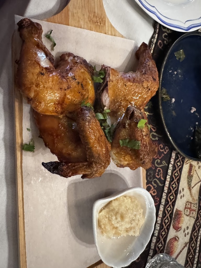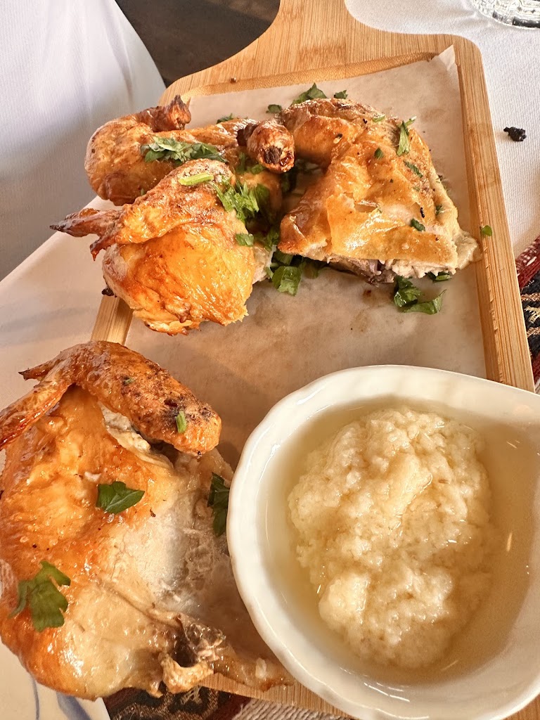 Everything was very tasty but chicken tabaka. Chicken tabaka has to be fried, be very flat and crunchy, instead they make it just as the regular chicken in an oven. Worst chicken tabaka ever. Service was great. Food